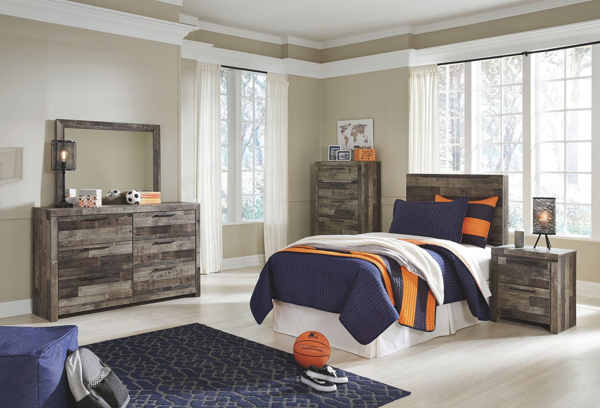 Derekson - Full Panel Headboard with Bolt on Bed Frame - Multi Gray